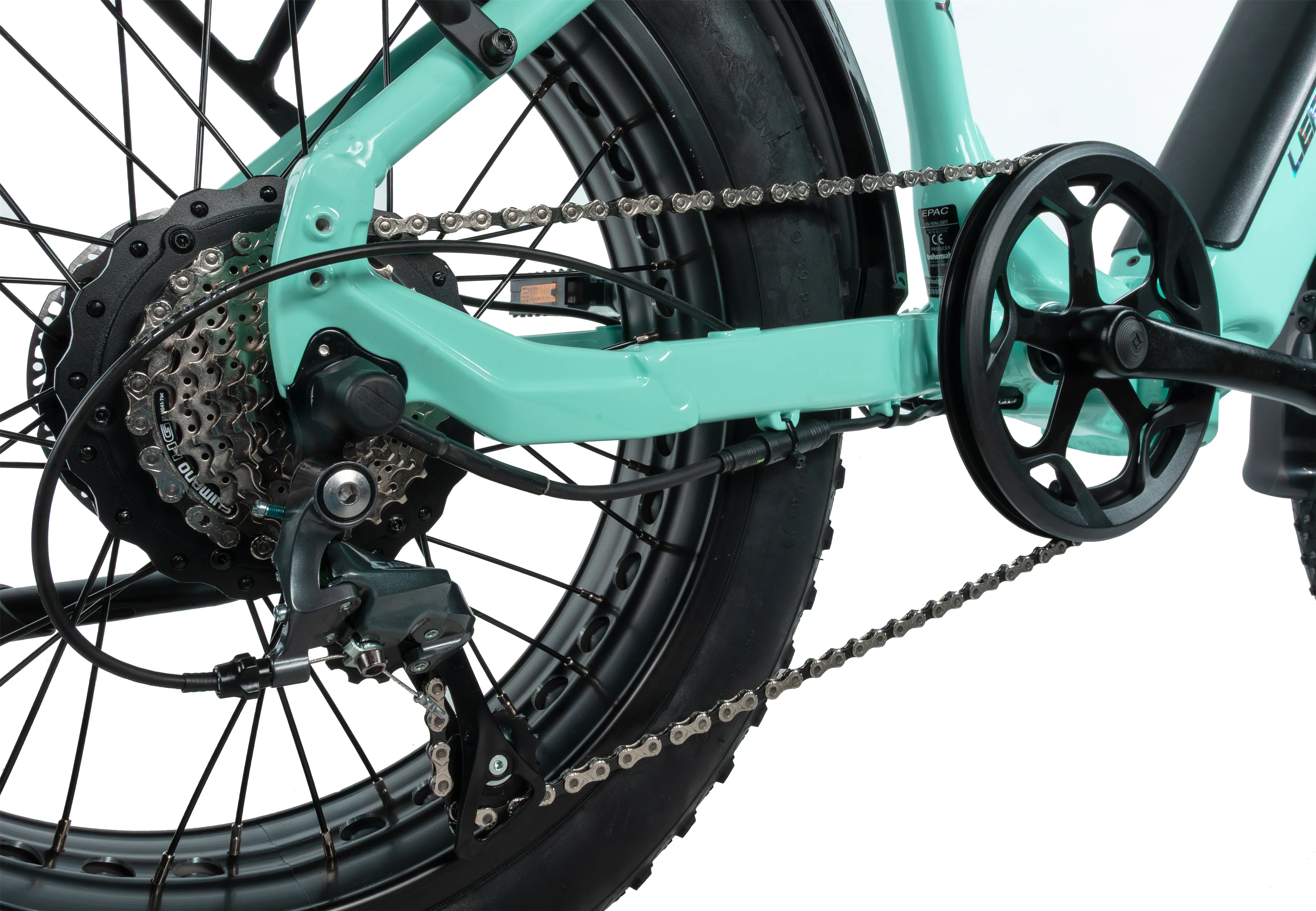 Electric FAT Bike Leader Fox CODY grips well on any surface thanks to wide tires on 20” wheels