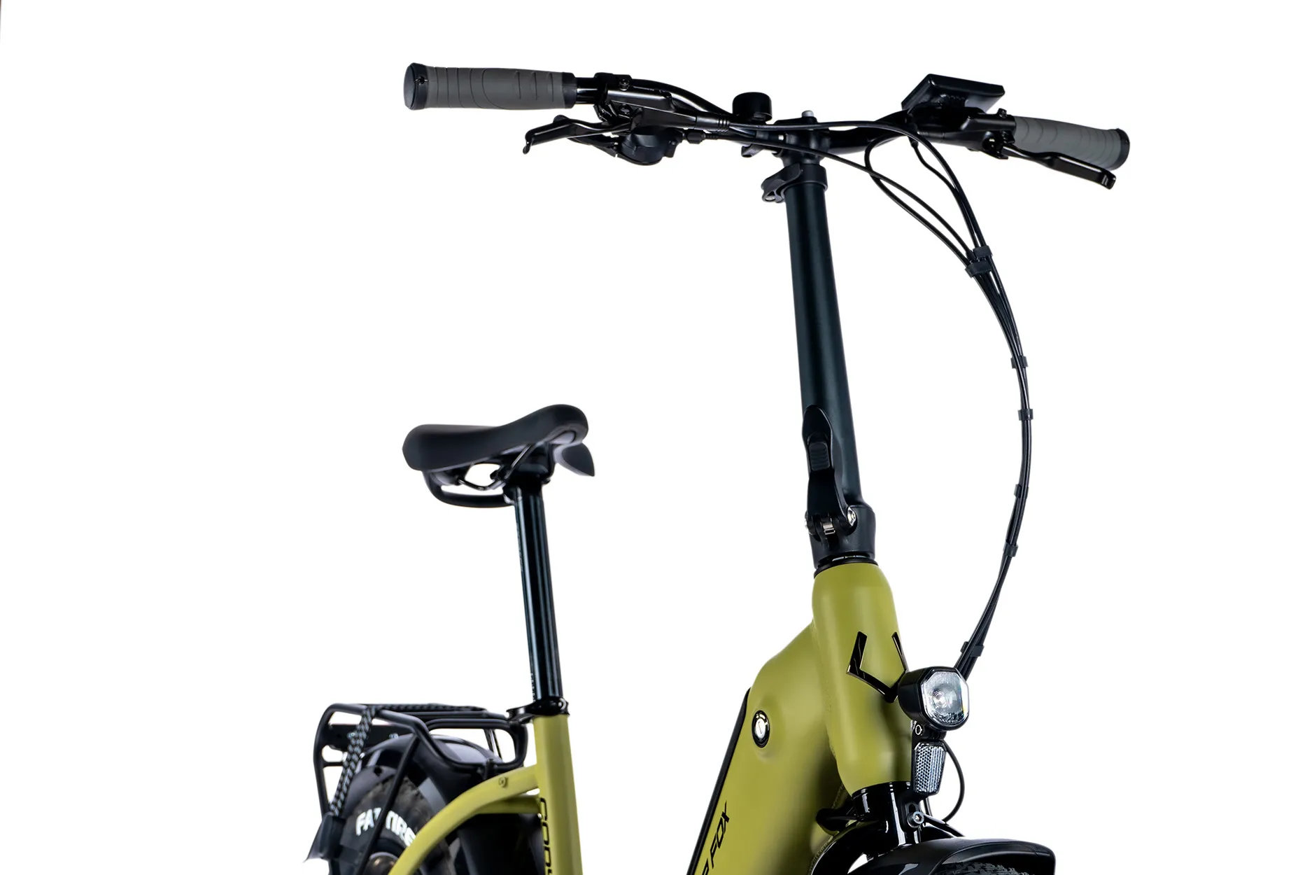 Ebike CODY maintains the high mobility and practicality of a folding bike with a robust and durable construction, making it a great choice for urban environments. High-quality front LED lighting will ensure you have sufficient visibility when driving in the dark. You can comfortably carry your work bag or sports bag on the back rack.