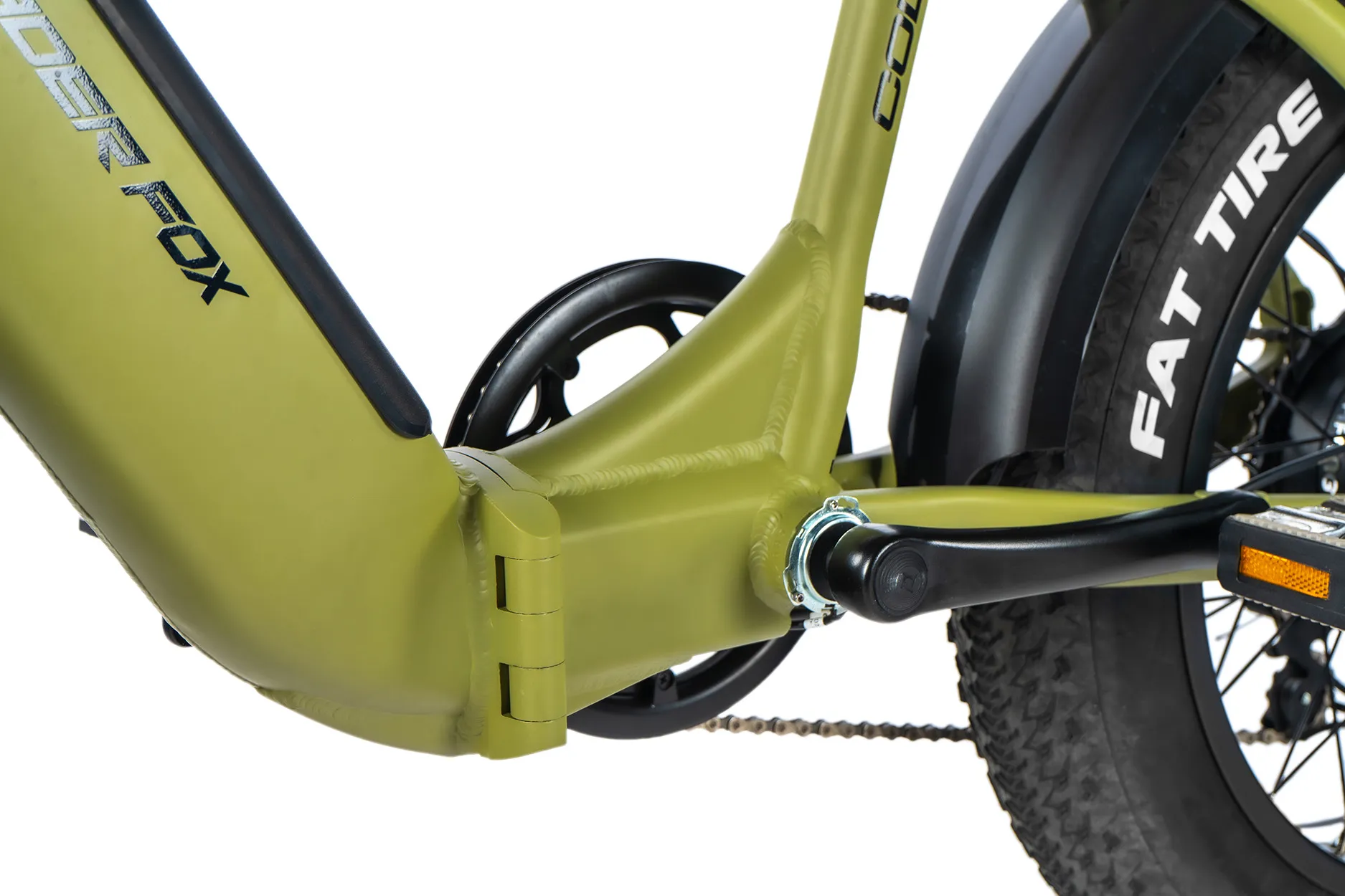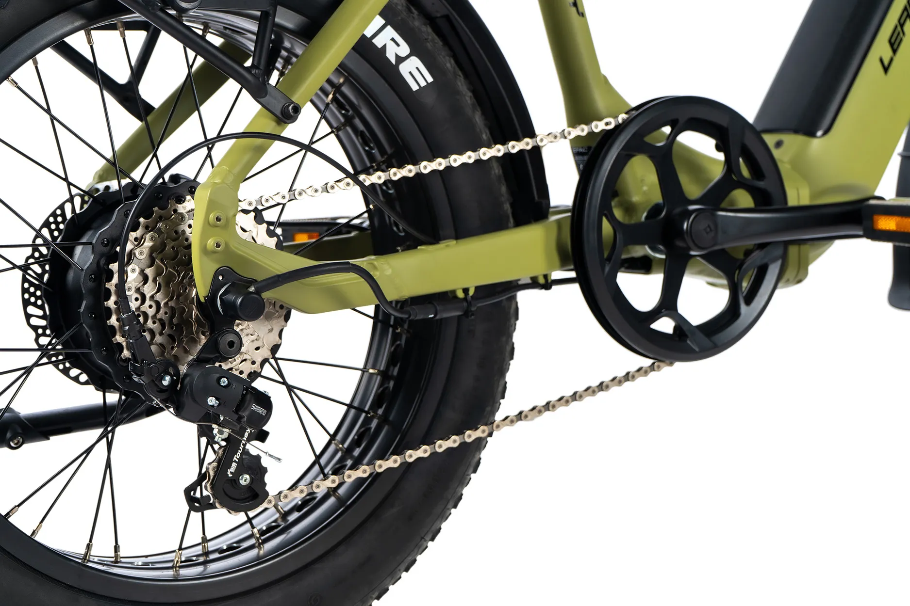 New. Folding FAT Bike Leader Fox CODY 20" with rear electric motor, aluminum frame, elegant design, fixed front fork and disc brakes. Guarantees stability, grip and comfortable handling on every journey.