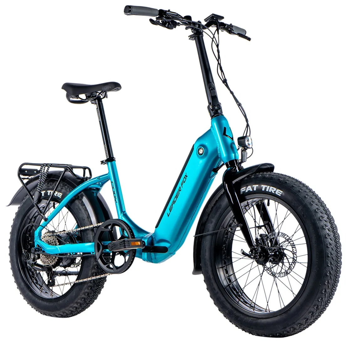 New. Folding FAT Bike Leader Fox CODY 20" with rear electric motor, aluminum frame, elegant design, fixed front fork and disc brakes. Guarantees stability, grip and comfortable handling on every journey.