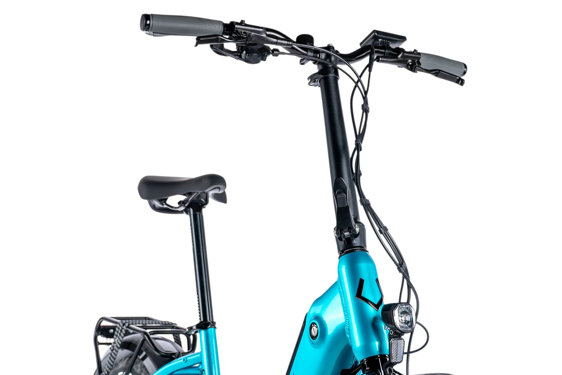 Ebike CODY maintains the high mobility and practicality of a folding bike with a robust and durable construction, making it a great choice for urban environments. High-quality front LED lighting will ensure you have sufficient visibility when driving in the dark. You can comfortably carry your work bag or sports bag on the back rack.