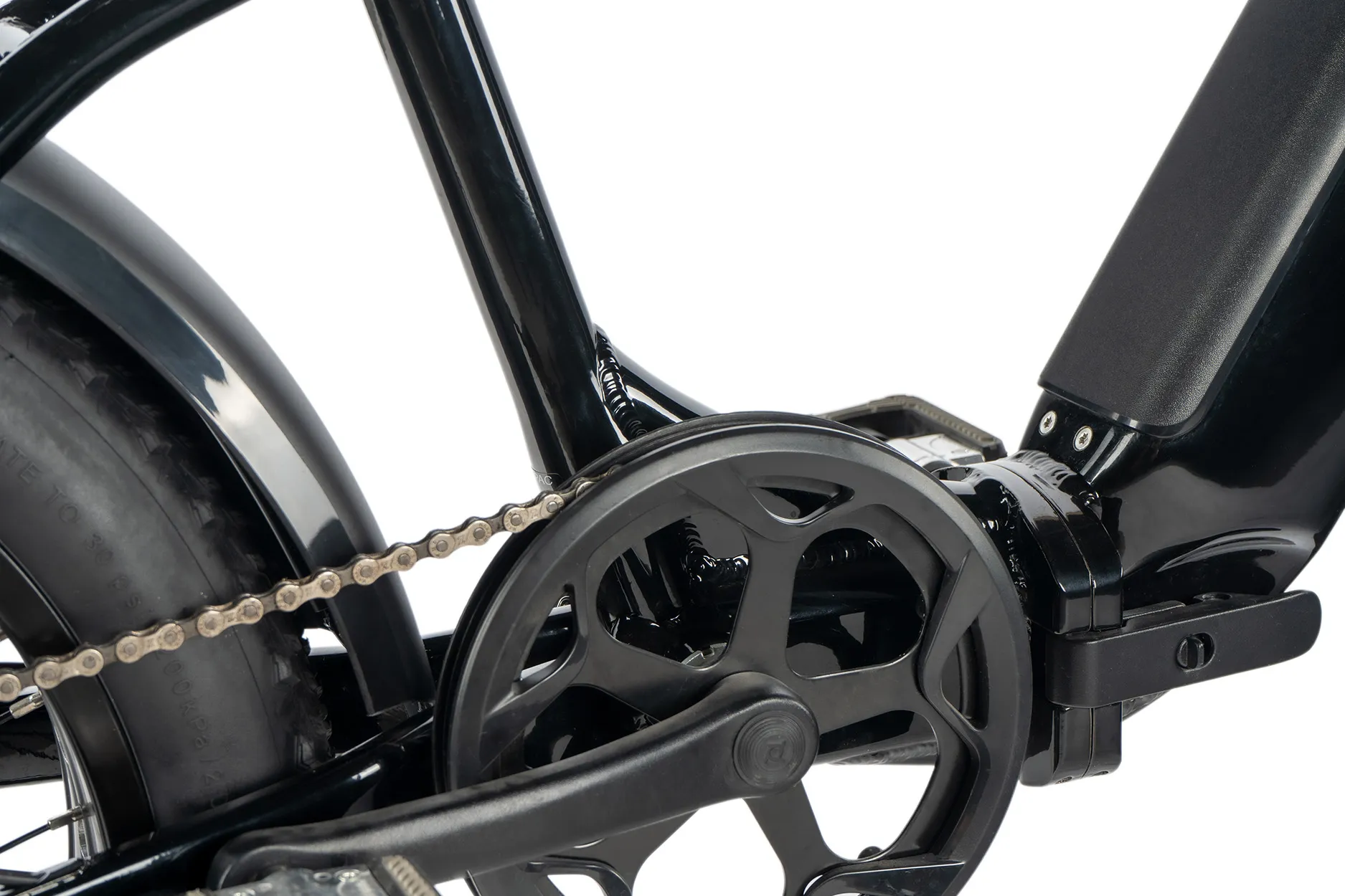 The Bafang rear electric motor stands out for its very smooth and quiet operation. It offers a nominal power of 250W and a maximum power of 350W with a fully sufficient torque of 80 Nm for city driving.