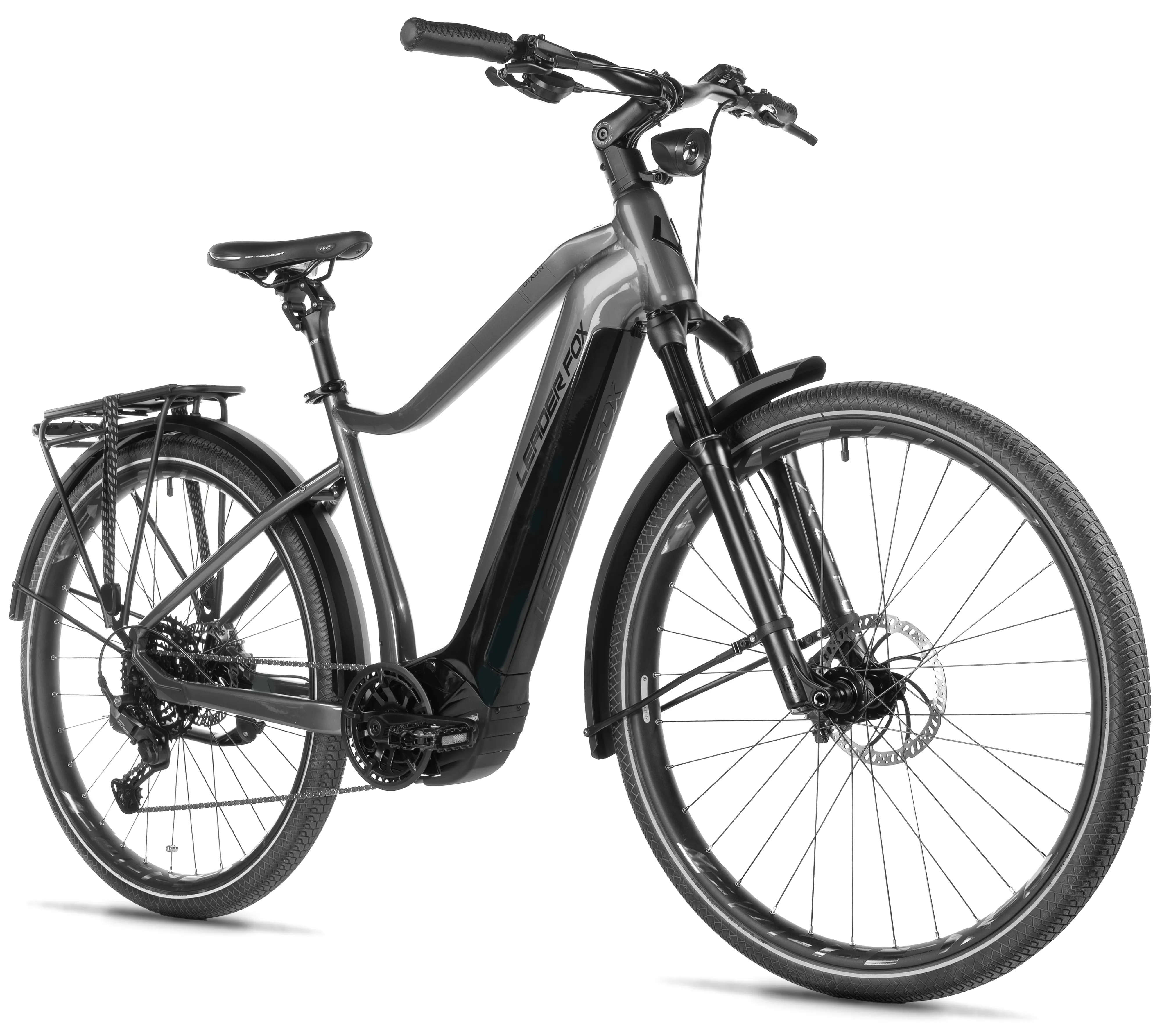 DIXON is ready not only for long adventures but also for everyday riding. The powerful EXERACE front LED light with 100 LUX output ensures excellent visibility even in low-light conditions, while aluminum mudguards protect against dirt and water. The Selle Royal Moderate Exploria saddle supports a comfortable riding position even on longer journeys.