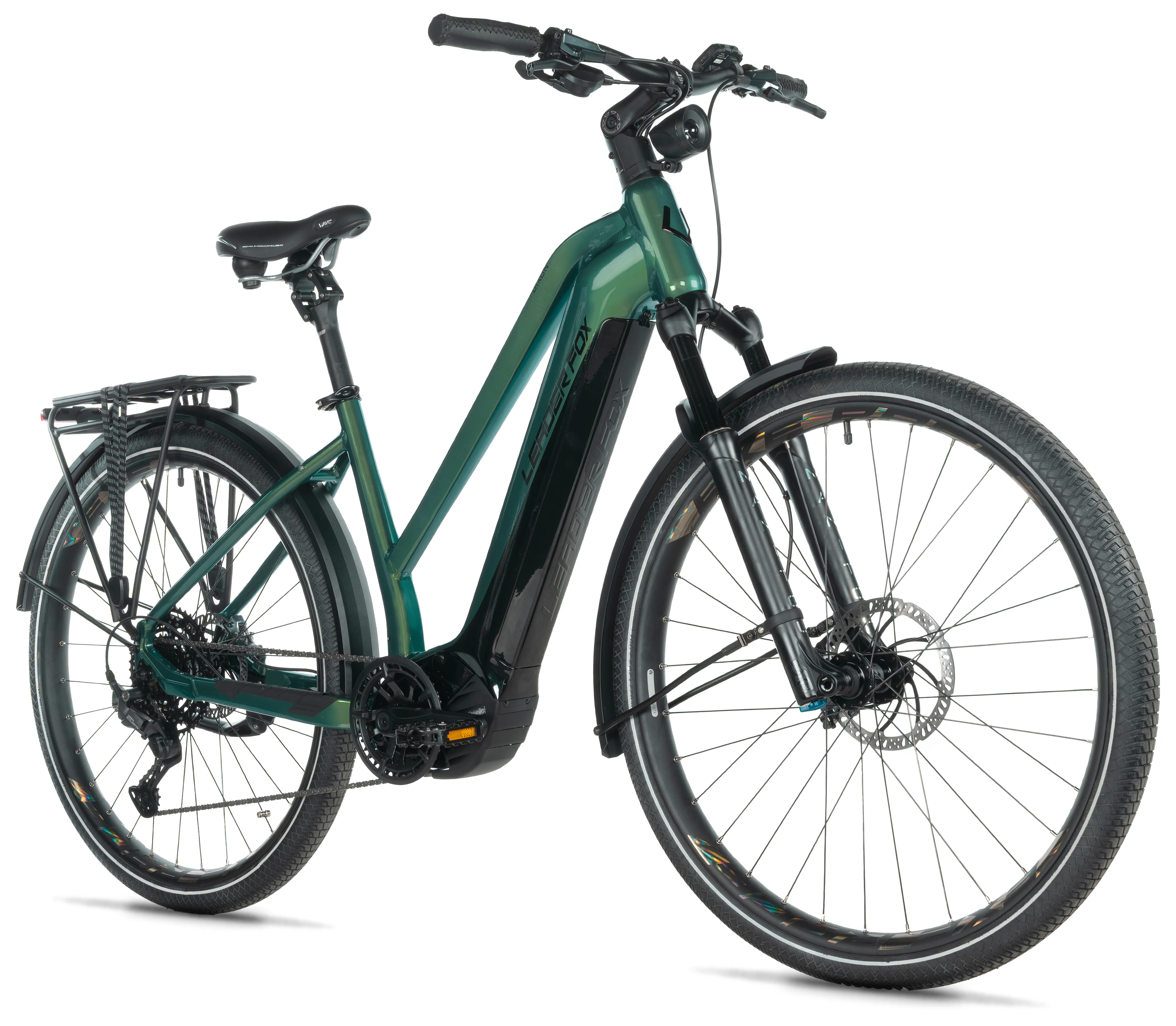 DIXON is ready not only for long adventures but also for everyday riding. The powerful EXERACE front LED light with 100 LUX output ensures excellent visibility even in low-light conditions, while aluminum mudguards protect against dirt and water. The Selle Royal Moderate Exploria saddle supports a comfortable riding position even on longer journeys.