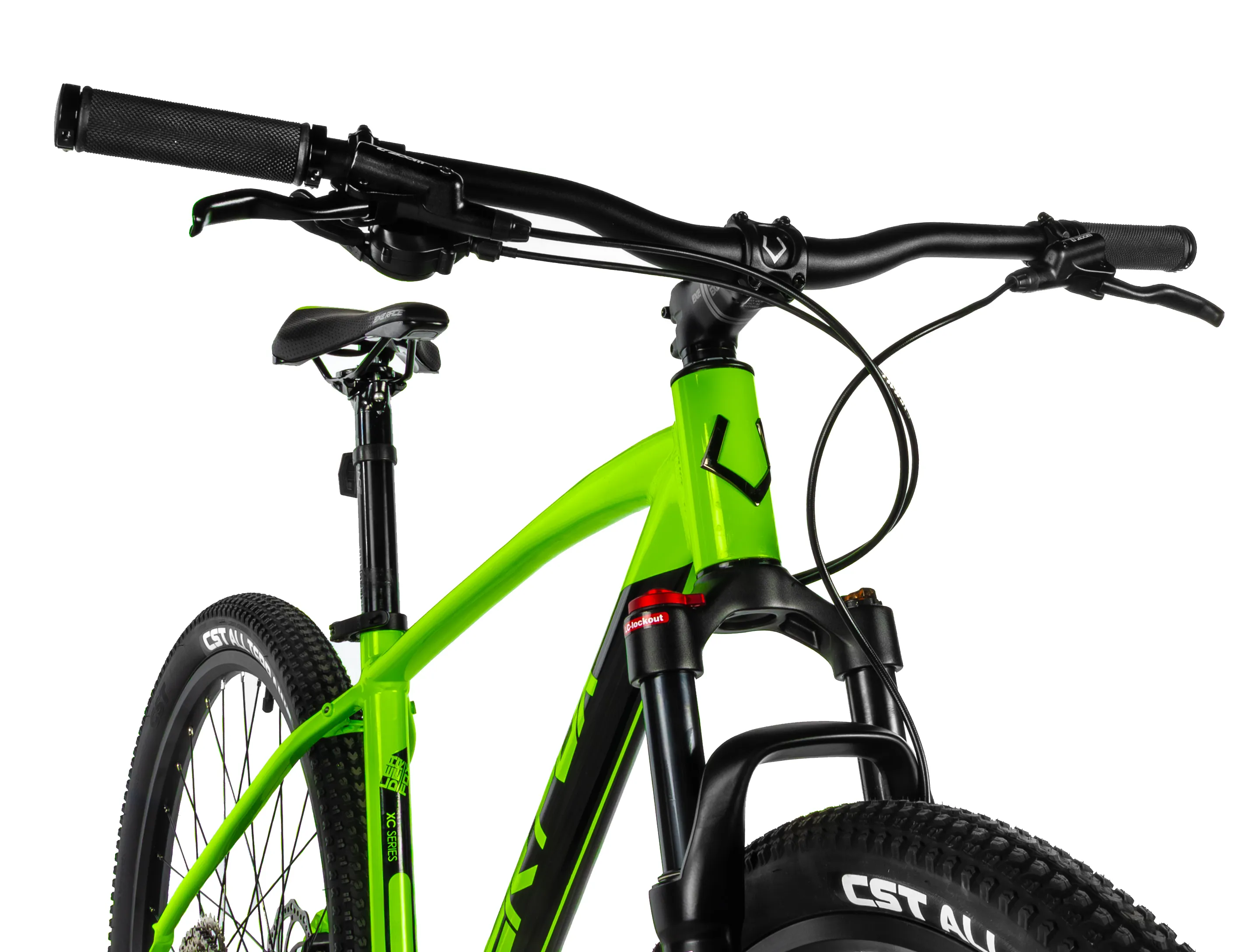 The lightweight aluminum frame and suspension front fork with 100 mm travel absorb shocks and bumps, ensuring comfort even when riding on more demanding surfaces. Medium-width CST tires provide confidence and stability on any terrain, so you can enjoy a smooth ride with full control and ease of movement.