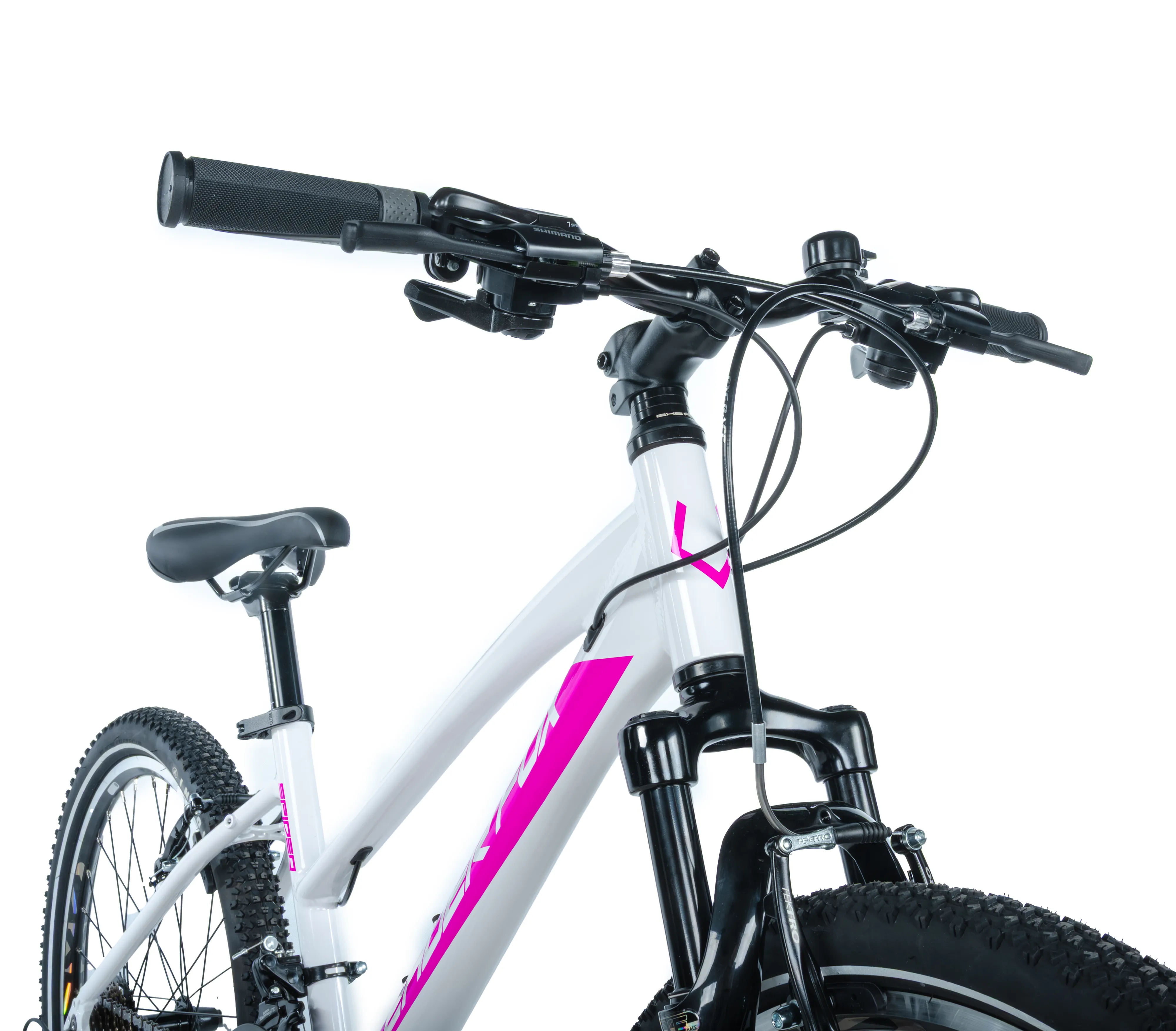 The aluminum frame provides low weight and high strength, making the bike easy to handle and safe. The ZOOM FORGO suspension fork with 50mm of travel absorbs bumps and unevenness, so your child can handle even the most challenging sections with confidence and comfort.