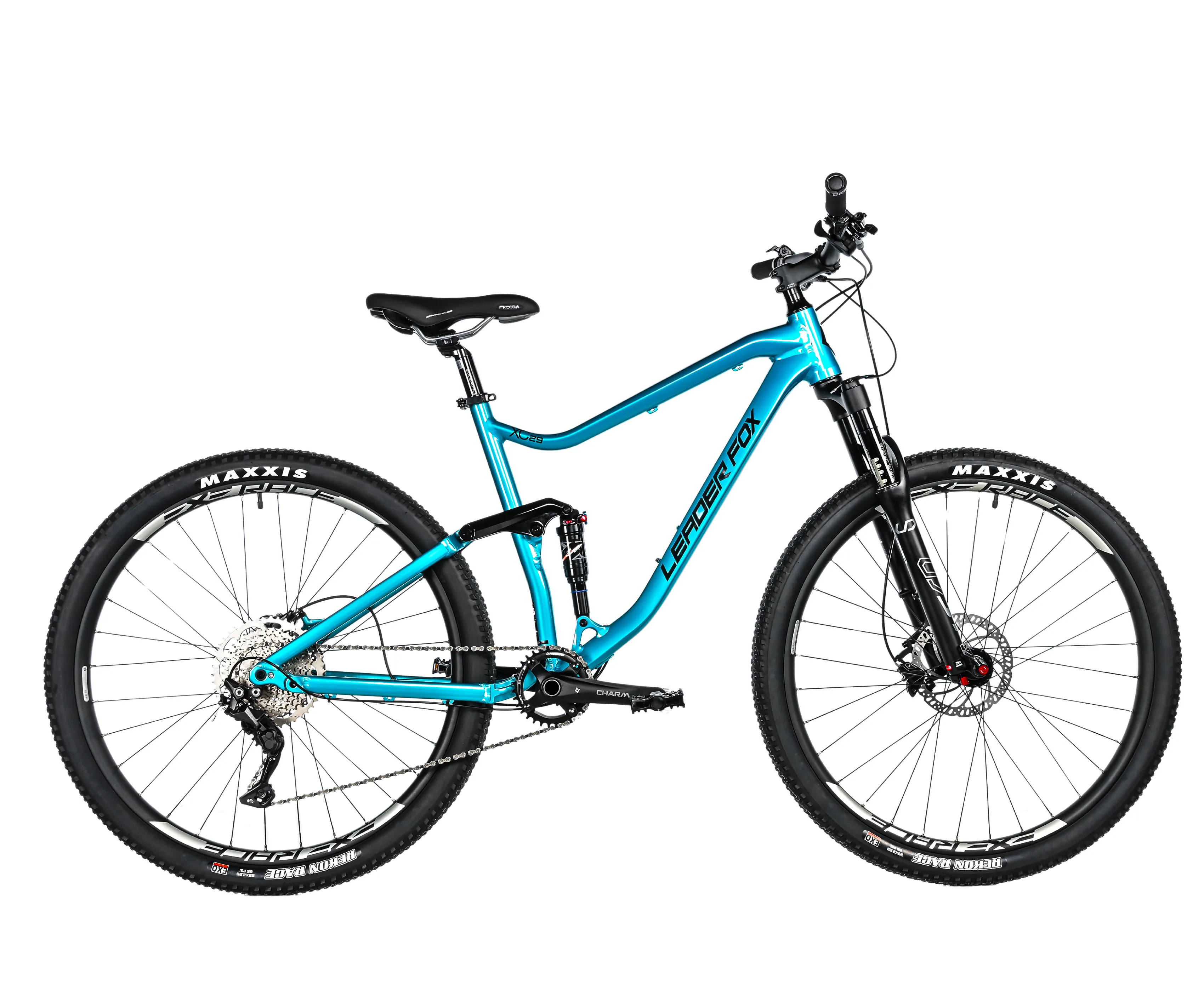 Leader Fox TRION 29" full-suspension cross country bike in a light aluminum frame and Manitou suspension. For true enjoyment of off-road riding. TRION is a great choice for those who want full suspension without compromise.